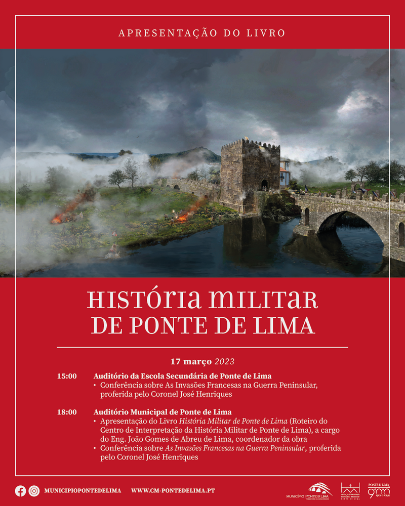 O próximo dia 17 de março será um dia em cheio em Ponte de Lima para todos os que se interessam sobre a História militar e a História local. Tendo como pano de fundo a apresentação pública do livro História Militar de Ponte de Lima (Roteiro do Centro de Interpretação da História Militar de Ponte de Lima), teremos a presença do conhecido perito em assuntos militares, Coronel José Henriques, que fará duas conferências sobre As Invasões Francesas na Guerra Peninsular, mostrando a relevância da resistência dos exércitos e das populações locais, sobretudo no contexto da Segunda Invasão, que tão importante foi também para todo o concelho de Ponte de Lima.