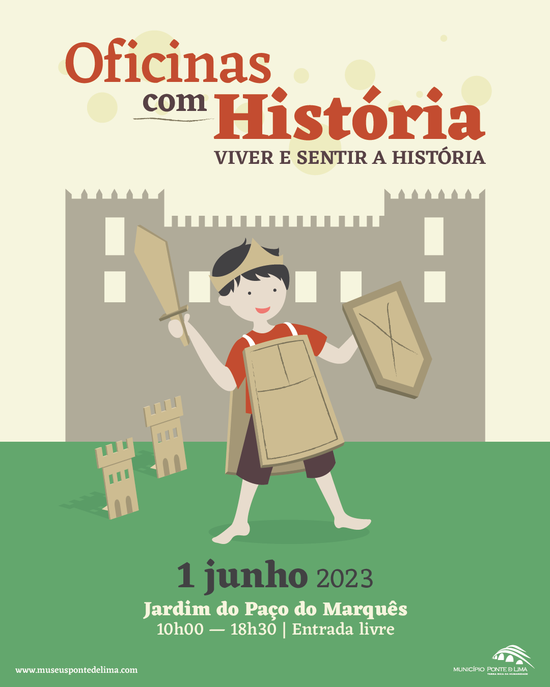 No dia 1 de junho, das 10h00 às 18h30, realiaza-se as Oficinas com História – Viver e Sentir a História, no Jardim do Paço do Marquês.
