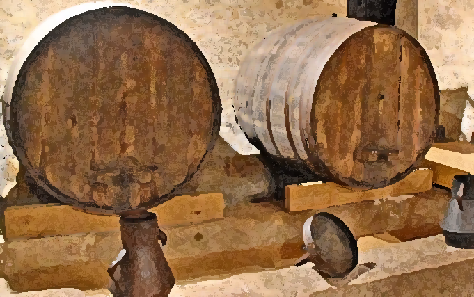 Em regra, o piso apresenta-se em terra batida sobre a qual se dispõem os vasilhames de madeira (barris, pipas ou tonéis) que guardam o vinho, assentes em MALHAIS. Estes consistem numa espécie de calços usados para fixar, na posição desejada, as vasilhas nas adegas, sendo formados por barrotes grossos de madeira, mostrando em baixo linhas retas e em cima uma forma curvilínea.