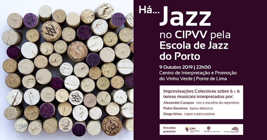 A 9 de outubro, às 22h00, no CIPVV - Centro de Interpretação e Promoção do Vinho Verde, com entradas gratuitas, Há... Jazz no CIPVV, pela Escola de Jazz do Porto, com Improvisações colectivas sobre 6 + 6 temas musicais interpretados por:
