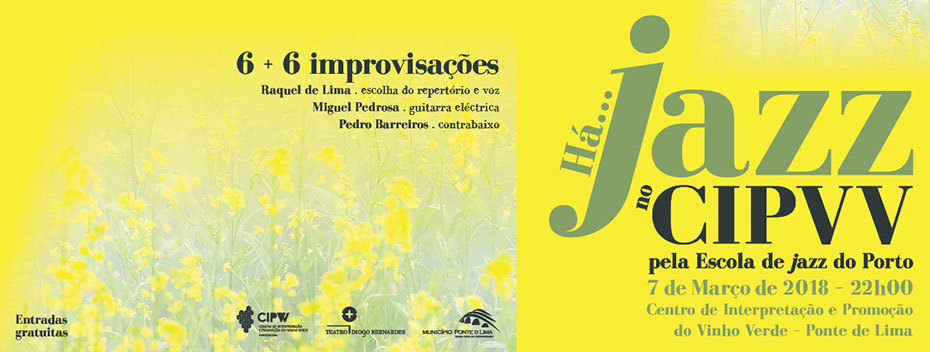 Há… Jazz no CIPVV - Centro de Interpretação e Promoção do Vinho Verde, pela Escola de Jazz do Porto, com Improvisações colectivas sobre 6 + 6 temas musicais interpretados por: