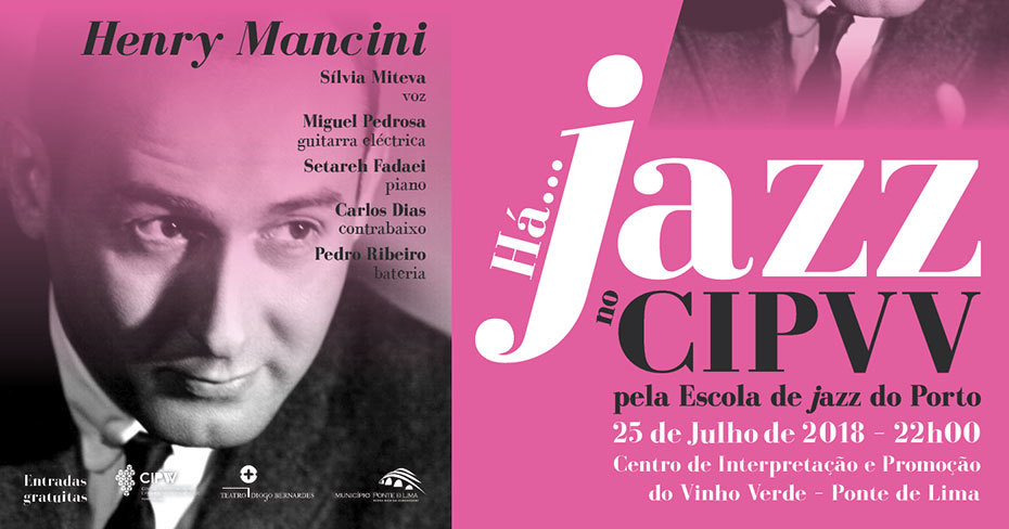 A 25 de julho, às 22h00, no CIPVV - Centro de Interpretação e Promoção do Vinho Verde, Há... Jazz no CIPVV, a cargo da Escola de Jazz do Porto, em que serão interpretadas músicas de Henry Mancini, numa formação composta por: