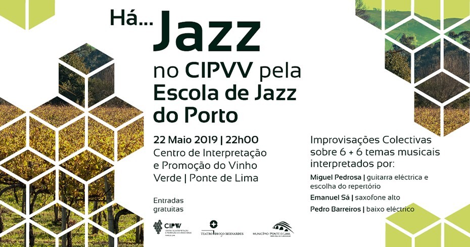 A 22 de maio, às 22h00, no CIPVV - Centro de Interpretação e Promoção do Vinho Verde, com entradas gratuitas, Há... Jazz no CIPVV, pela Escola de Jazz do Porto, com Improvisações colectivas sobre 6 + 6 temas musicais interpretados por: