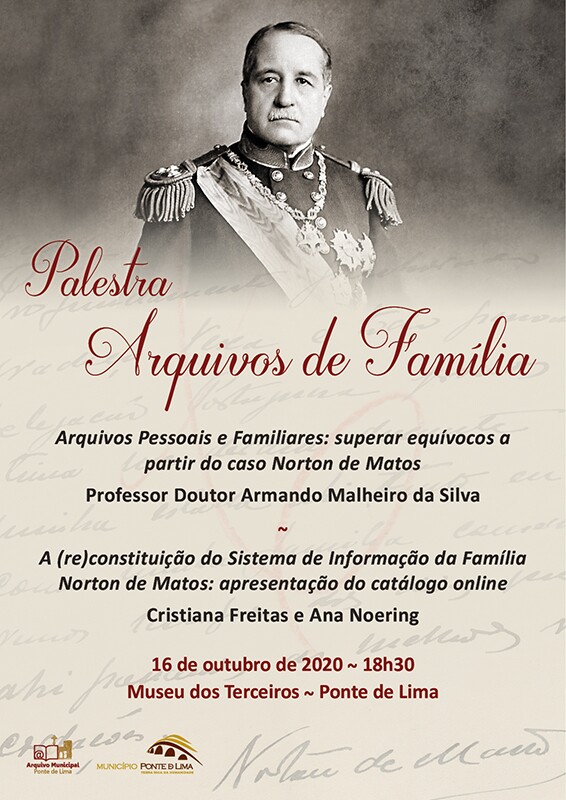 O Município de Ponte de Lima, através do Arquivo Municipal, promove, no próximo dia 16 de outubro, pelas 18h30, no Museu dos Terceiros, uma palestra sobre Arquivos de Família cujo principal objetivo consiste na apresentação pública do catálogo online do arquivo pessoal e familiar do General Norton Matos.