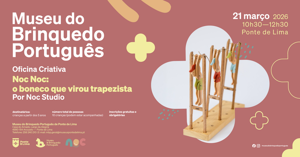 No dia 21 de março de 2026, das 10h30 às 12h30, o Museu do Brinquedo Português promove mais uma Oficina Criativa "Noc Noc: o boneco que virou trapezista" orientada pelo Noc ...Local:Museu do Brinquedo Português -