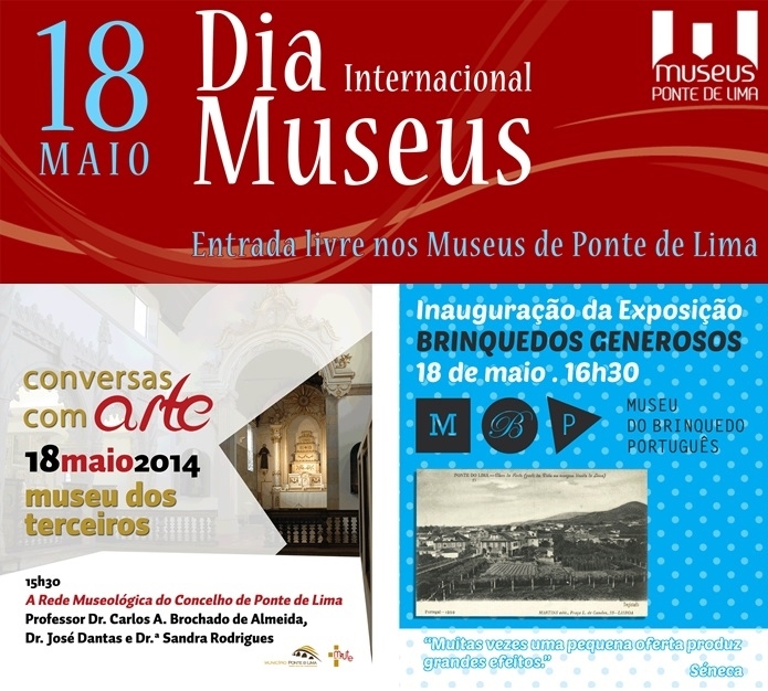 Ponte de Lima assinala a data com entradas gratuitas nos museus e com o encerramento do ciclo de Conversas com Arte, no Museu dos Terceiros, às 15h30. No Museu do Brinquedo Português abre ao público uma nova exposição temporária: BRINQUEDOS GENEROSOS, às 16h30.